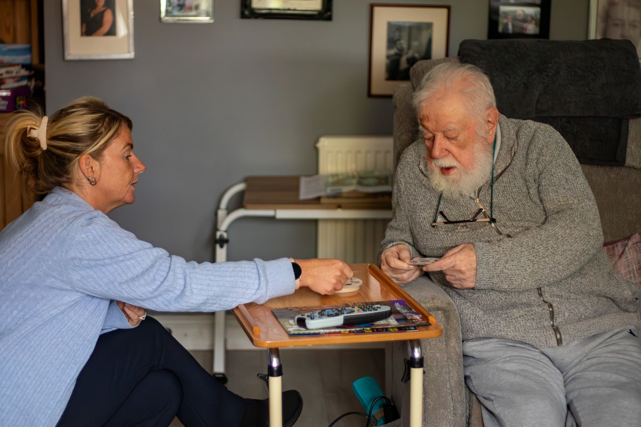 Amy cooks, cleans, and plays games with her uncle. "She might do a puzzle, sit and watch telly with him, even react to his stories.”